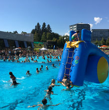 Das große Schwimmbecken und Außengelände des Freibades wurde im Zweijahresrhythmus zum Erlebnisparadies für Sportinteressierte.